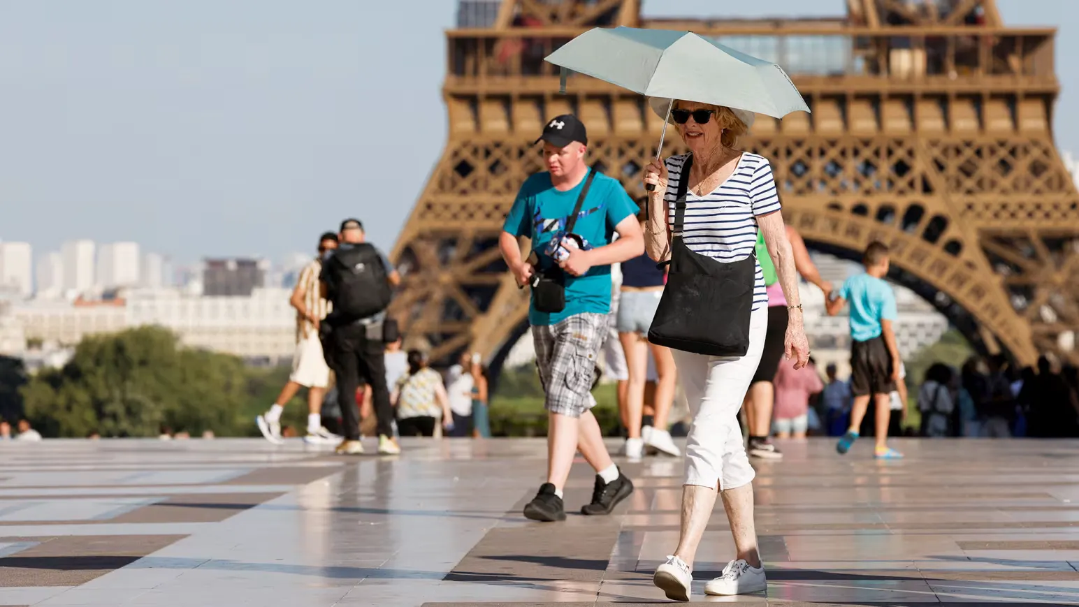 Entre junho e julho de 2025, a capital francesa foi colocada sob alerta vermelho para calor extremo em função das ondas de calor que marcam o verão europeu. IMAGEM: Ludovic Marin/AFP/Getty Images/CNN