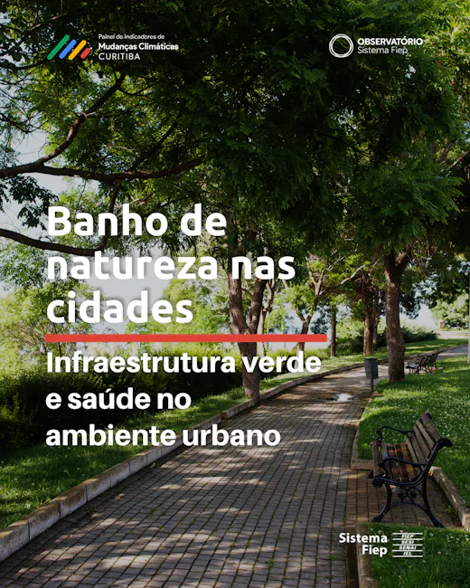 OBSERVATÓRIO SISTEMA FIEP / PAINEL DE INDICADORES DE MUDANÇAS CLIMÁTICAS DE CURITIBA (PIMCC). Banho de natureza nas cidades - Infraestrutura verde e saúde no ambiente urbano. Disponível em: https://paineldemudancasclimaticas.org.br/noticia/banho-de-natureza. Acesso em: dd/mm/aaaa.