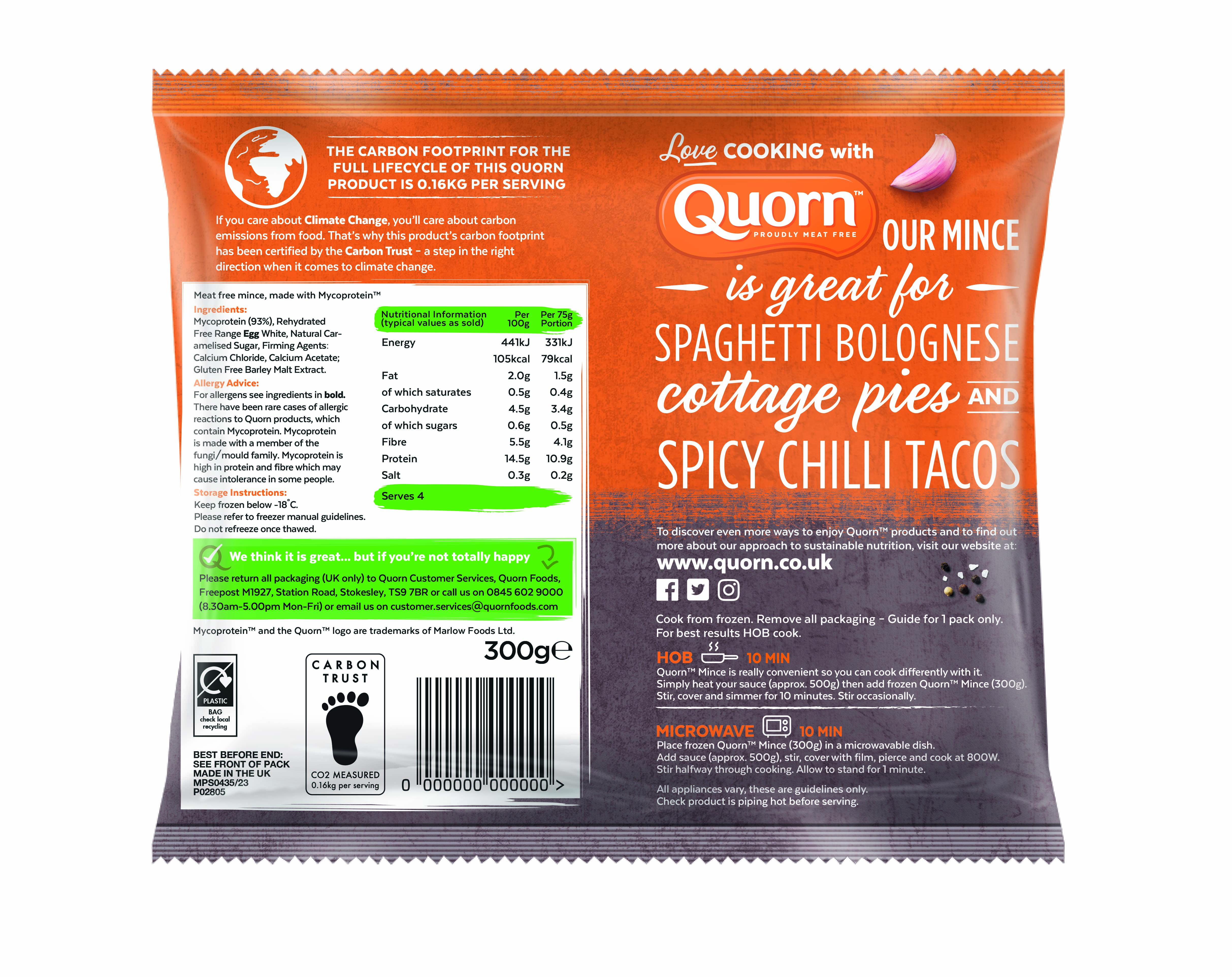 Empresa de alimentos do Reino Unido, referência na produção e oferta de fontes alternativas de proteína. Divulga, desde 2020, a pegada de carbono na embalagem dos seus produtos.